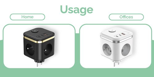 Sieťový adaptér • rozbočovač • zásuvka • 3 x AC (230 V) výstup • 1 x USB-A (5 V 3A, 9 V 2 A, 12 V 1,5 A) • 2 x USB-C (5 V 3 A, 9 V 2,22 A, 12 V 1, 67A) • kompaktné rozmery a dizajn • tlačidlo ON/OFF • možnosť nabíjania až 6 zariadení súčasne
