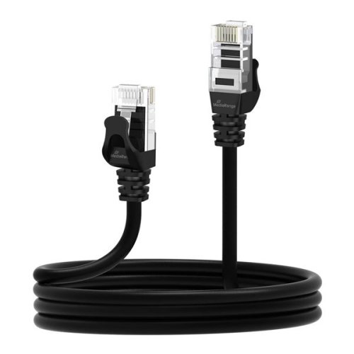 • Čierny, 3 m dlhý sieťový kábel MediaRange, UTP CAT 6 (1Gbps), konektor RJ45 so zaklapávacími zámkami