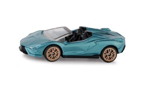 Sián Roadster je prvý hybridný superšportový kabriolet od Lamborghini s prvou superkondenzátorovou hybridnou technológiou na svete a vyrobený z doteraz unikátnych kombinácií materiálov. V tejto chvíli si mohutný zvuk motora V12 s výkonom 800 k - mimochodom doteraz najvýkonnejšieho motora Lamborghini - stále musíme pri hraní predstavovať alebo inak napodobňovať. Zvyšok modelu Sián Roadster sa však úplne zhoduje s pôvodným športovým vozidlom: So svojou robustnou kovovou karosériou a cool tvarom šípu je dokonalou reprodukciou originálu. Športový vzhľad završujú elegantné zlaté ráfiky, ktoré vďaka pogumovanému behúňu vždy poskytujú optimálnu priľnavosť aj pri maximálnej rýchlosti. Podvozok a interiér sú vyrobené z čierneho plastu, cez otvorenú strechu je dokonale vidieť. Predné svetlomety v typickom tvare Y sú verné originálu, rovnako ako zadné svetlá. Rozmery: 9,7x3,8x7,8cm. Vek: 3+