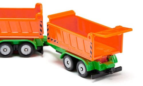 SIKU Blister - Nákladné auto so sklápacou korbou a vlekom. Sutiny, zemina, štrk alebo piesok. Nákladné auto so sklápacou korbou a vlekom je všestranným pomocníkom na každom stavenisku. Auto je poháňané silným motorom, Nákladné auto so sklápacou korbou a vlekom môžeš naložiť pomocou bagrov SIKU a kolesových nakladačov. Po príchode na miesto vykládky môže byť príves odpojený a môžeš náklad zložiť postupne. Zadné dvere sklápacích korieb sú otváracie. Auto SIKU je vyrobené z vysoko kvalitných plastov a kovov. Rozmer: 152 x 28 x 36 mm. Rozmer balenia: 19,7 x 3 x 7,8 cm. Vek: 3+.