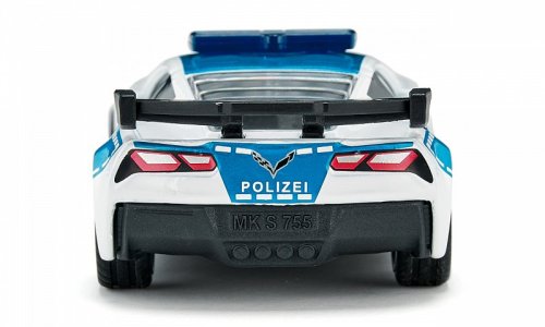 Žiadna šanca pre podvodníkov na úteku – tento rýchlik ich všetkých chytí: S Chevrolet Corvette ZR1 polícia určite vyhrá každú naháňačku, pretože americký svalovec s motorom V8 prináša na diaľnici obrovský výkon a je takmer neprekonateľný, dokonca aj mimo nej. Jeho aerodynamický dizajn s kovovou karosériou, zadným spojlerom, športovými ráfikmi s pogumovanými pneumatikami a modrým celoobvodovým svetlom robia z bieleho a modrého policajného vozidla skutočne výkonný model. Kapotu je možné otvoriť, čo poskytuje pohľad na výkonný motor Chevrolet Corvette ZR1, ktorý je ako policajné služobné vozidlo hviezdou vozového parku herne. Rozmery balenia: 9,7 x 7,8 x 4 cm. Vek: 3+