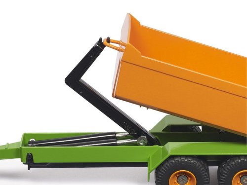 Každý malý poľnohospodár alebo farmár zajasá! Tento zelený ťažný traktor Fendt má za sebou jasne oranžový príves, vďaka ktorému môžete odviezť množstvo ťažkého materiálu. Traktor má pružný čelný nakladač, odnímateľnú strechu a zadnú spojku prívesu. Model je vyrobený z kvalitného a odolného materiálu v mierke 1:50 a zaujme mnohými prepracovanými detailmi. Rozmer: 268 x 58 x 70 mm. Rozmer balenia: 9,7 x 34 x 6,5 cm. Vek: 3+