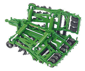 Kovový model zaujímavého kĺbového traktora John Deere 9630 s dvojitými kolesami a viacúčelovými bránami Amazone. Model traktora je prepracovaný do jemných detailov vrátane potlače. Zatáčanie je realizované pomocou kĺbu uprostred traktora. Pripojiteľné brány Amazone možno zdvihnúť do prepravnej polohy alebo nechať sklopenej v pracovnej pozícii. Všetky kolesá a valce brán sú otočné. Model je vyrobený z kovu a doplnený plastovými dielmi. Pneumatiky sú gumové. Mierka: 1:87. Rozmer: 177 x 86 x 43 mm. Rozmer balenia: 22,6 x 8 x 7,5 cm. Vek: 3+