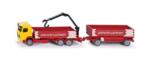 Kamión na prepravu stavebných materiálov s prívesom je detailne prepracovaná kópia v mierke 1:87. Kabína Mercedesu-Benz Arocs na dlhom podvozku s valníkom a žeriavom plus dvoma prívesmi s nápravami s valníkom. Toto typické motorové vozidlo je určené na stavby všetkého druhu, kam dováža potrebné materiály na stavbu v SIKU svete. Vďaka pohyblivému žeriavu nemá žiadny problém s odovzdaním nákladu na traktor alebo príves. Vďaka silnému háku je možné pripojiť a naložiť mnoho rôznorodých materiálov. Rozmer: 216 x 30 x 63 mm. Rozmer balenia: 7,5 x 26 x 4,8 cm. Vek: 3+