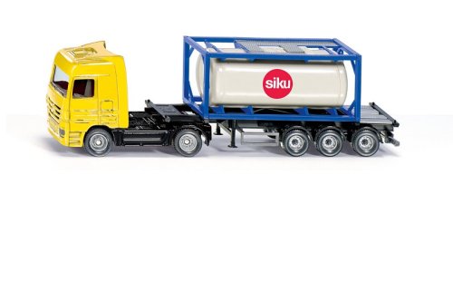 Kamión s cisternou je detailne prepracovaná kópie v mierke 1:87. Cisternové kontajnery sa používajú na prepravu tekutých surovín a plynov, po celom svete. Ťahač Actros s jeho 3 nápravami dopravuje kontajner na ceste z alebo na loď. Kontajner je vybavený pevnou konštrukciou a je možné ho nakúpiť. Upozornenie: Kontajner sa nedá naplniť. Rozmer produktu: 75x195x44 mm Vek: 3+