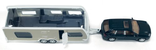 Súprava s Porsche Cayenne Turbo ako ťažné auto a "Exclusive Emotion" karavan od firmy Dethleff tvorí neprehliadnuteľný komplet. Porsche Cayenne je vypracovaný do jemných detailov a karavan s mnohými funkciami a veľkým množstvom nápisov dotvára dobrý pocit z tohto modelu. Karavan má odnímateľnú strechu, takže môžete bez problémov nahliadnuť dovnútra a hrať sa s figúrkami, ktoré sú súčasťou sady. Karavanu, rovnako ako modelu Porsche, sa otvárajú dvere. Sada tiež obsahuje štyri figúrky, dve stoličky, stolík, lehátko, gril a slnečník. Rozmer: 228 x 44 x 47 mm. Rozmer balenia: 25,5 x 5,9 x 11,5 cm. Vek: 3+