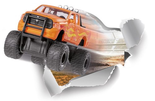 Tento obľúbený americký zákazkový variant Dodge RAM má nielen plamene na karosérii, ale páli aj vpredu: 395 HP pod kapotou! Prednú stranu zdobí svalnatá hlava barana, symbolizujúca silu a vytrvalosť. Obzvlášť robustný vzhľad umocňuje dobre známy ochranný rám, masívny predný chránič. Rám umiestnený na nákladovom priestore nesie osvetľovaciu jednotku so štyrmi reflektormi. Karoséria tohto modelu siku je vyrobená z kovu a je možné otvoriť kapotu, dvere a zadné veko. Každá z jeho náprav je samostatne odpružená a kolesá je možné meniť. Ako zákazkový variant s vysokým podvozkom v jasne oranžovej farbe s obzvlášť hrubými a širokými balónovými pneumatikami a plameňmi potlačenými na oboch stranách vytvára RAM 1500 pôsobivý vzhľad, ktorý je často vidieť na amerických diaľniciach. Rozmery balenia: 17,5 x 8,7 x 6,5 cm. Vek: 3+