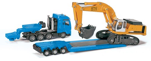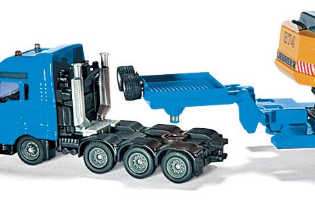 MAN TG-A ako pôsobivý model štvorosého ťažkého ťahača v mierke 1:87. model je vyrobený prevažne z kovu s jemnými detailmi a opatrený plastovými doplnkami a gumovými kolesami. Podvalník je možné ľahko odpojiť. Bager LIEBHERR 974 je prepracovaný do detailov a spolu s funkčným ramenom tvorí jedinečný model. Ďalej poteší kvalitnú potlač a reálne sfarbenie. Rozmer: 275 x 55 x 81 mm. Rozmer balenia: 32 x 5,9 x 10,5 cm. Vek: 3+