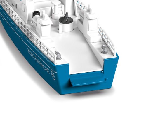 Policajná loď čerí vodu a stíha pašerákov. Polícia zapína modré a červené blikajúce LED svetlá a elektrickú sirénu. Pašeráci sa snažia uniknúť z teritoriálnych vôd. Jedinou možnosťou ako ich zastaviť, je použiť vodné delo: „Zapnite delo“! Vodné delo tak zastaví loď a policajti použijú navijak a lano na pritiahnutie lode smerom k policajnému člnu. Na zadnej časti je otvorená klapka a loď je vytiahnutá na palubu. Hotovo! Pašeráci boli zajatí. Nová policajná loď SIKUWORLD pláva a je vodeodolná. Keď je loď ukotvená, je tiež k dispozícii veľká bóje. Batérie: 3x LR41 (batérie sú súčasťou balenia). Rozmer: 318 x 88 x 138 mm. Rozmer balenia: 45 x 15 x 18,7 cm. Vek: 3+