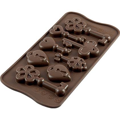 Nepriľnavá silikónová forma na prípravu čokoládových kľúčov a zámku.
