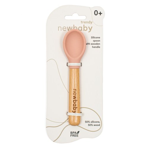 "Detská lyžička z radu New Baby Trendy spája moderný dizajn s praktickosťou. Kombinácia drevenej rukoväte s elegantným gravírovaním loga značky a najkvalitnejšieho silikónu bez BPA zaručuje bezpečnosť a komfort pri kŕmení vášho bábätka. Lyžička s dĺžkou 14 cm je vhodná pre deti už od útleho veku a vďaka použitiu. ná k citlivým detským ďasnám, zatiaľ čo ergonomická drevená rukoväť padne skvele do ruky.