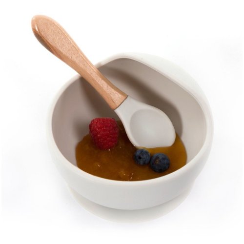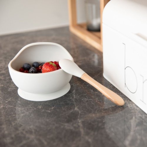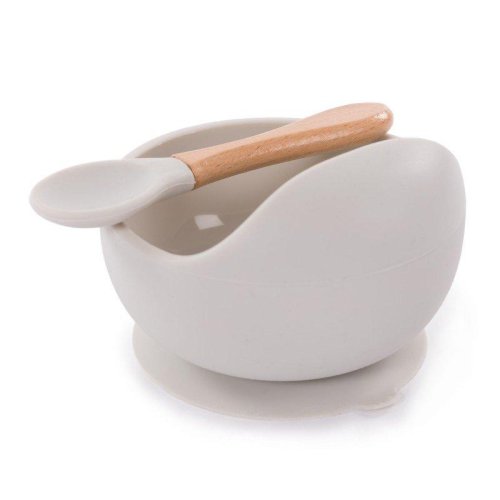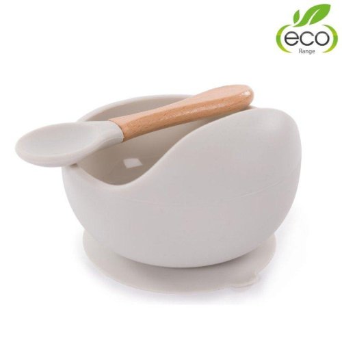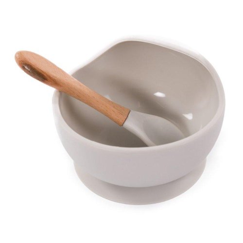 Silikónová miska s prísavkou a lyžičkou Grey