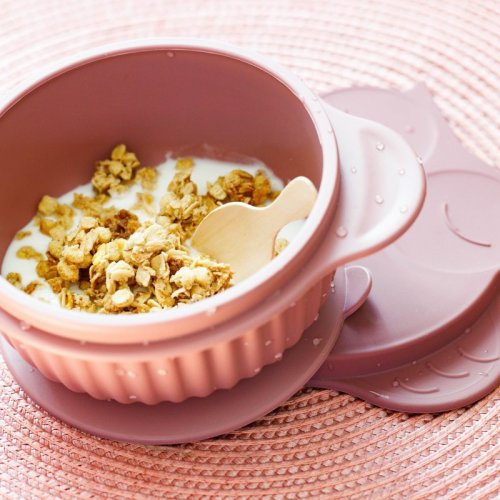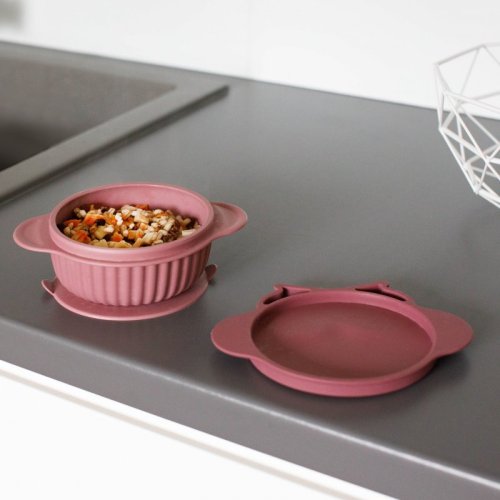 Silikónová miska s viečkom GIOfresh Owl Pink