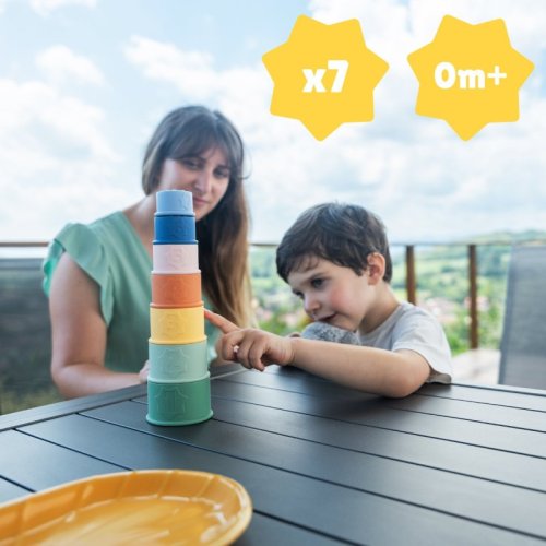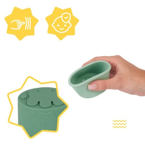 Stohovateľné silikónové kalíšky na rozvoj kreativity a motorických zručností dieťatka.