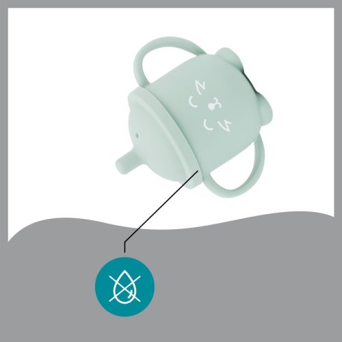 Celosilikonový hrnček s náustkom a úchytmi, ktorý pomôže dieťatku naučiť sa samostatne piť!