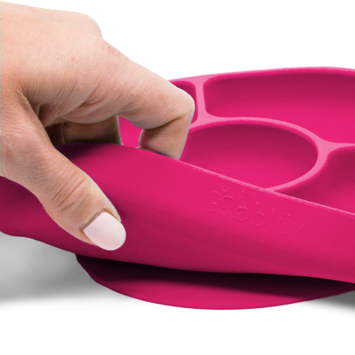 Silikónový tanierik s vyvýšenými okrajmi, ktoré uľahčujú naberanie jedla.