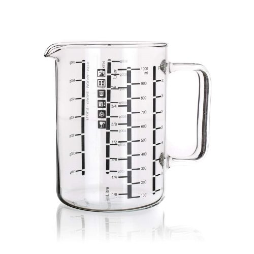 Kuchynská odmerka 1 l sa vyrába z tvrdého boritokremičitého skla, ktoré je veľmi odolné (mechanicky aj teplotne). Teplotná odolnosť je +300/-40 stupňov C. Výhodou je dlhá životnosť, hygienická nezávadnosť výrobkov (sú hladké a neporézne), ľahko sa udržujú (možno ich umývať v umývačkách riadu) a sú tiež ekologické.