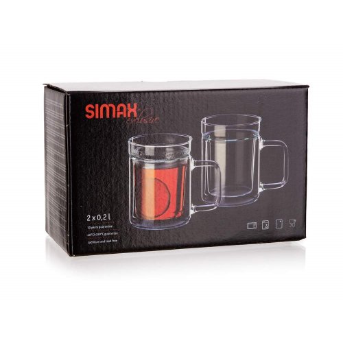Súprava dvojstenných hrnčekov TWIN 0,2 l, 2 ks sa vyrába z tvrdého boritokremičitého skla, ktoré je veľmi odolné (mechanicky aj teplotne +300/-40 stupňov). Výhodou je dlhá životnosť, hygienická nezávadnosť a ľahká údržba (možno umývať v umývačke riadu).