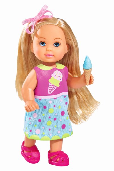 Bábika Evička má nový prístroj na výrobku zmrzliny. Vlož zmrzliny do prístroja, priklop, otoč a natoč zmrzlinu do kornútika. Veľkosť bábiky je 12 cm.