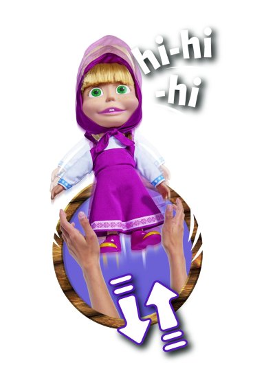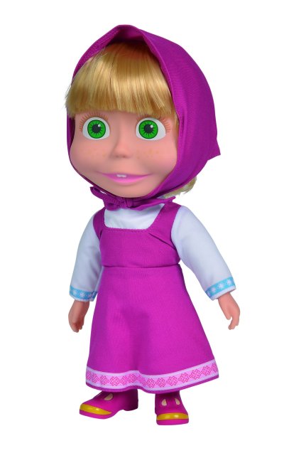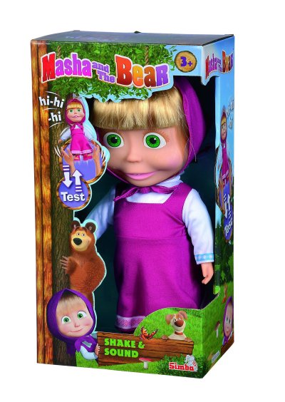 Bábika Máša z obľúbeného seriálu Máša a medveď s mäkkým telíčkom. Keď ju zatřeseš alebo ju vyhodíš do výška, začne sa smiať. Veľkosť 30 cm.