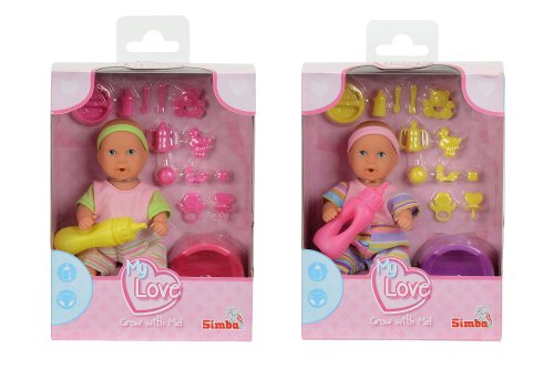 Panenka, která pije a čůrá. Součástí balení lahvička, nočník a další příslušenství. Výška panenky 12 cm.