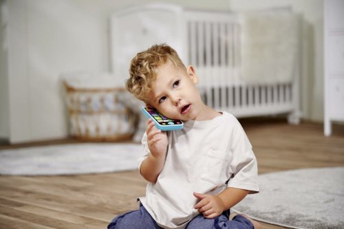 Mobilný telefón pre najmenších so svetelným a zvukovým efektom - melódie, hlasy zvieratiek a ďalšie zvuky. Výška telefónu 13,5 cm.
