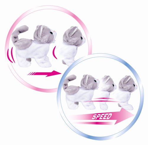 Šedobiela mačička z mäkkého plyšu sa môže pohybovať dvoma rôznymi rýchlosťami a vrtieť chvostíkom. Vydáva skvelé zvuky. ChiChi LOVE mačička je 15 cm vysoká.