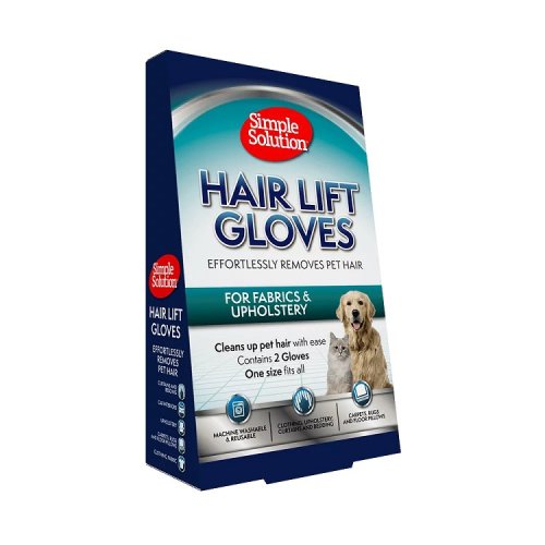 Rukavice na odstraňovanie chlpov Simple Solution majú jedinečnú textúru, ktorá pomáha uvoľňovať chlpy domácich zvierat z náročných povrchov ako sú tkané látky, koberčeky, záclony a posteľnú bielizeň. Ľahko sa používajú a dajú sa prať v práčke, balenie obsahuje 2ks univerzálnej veľkosti.