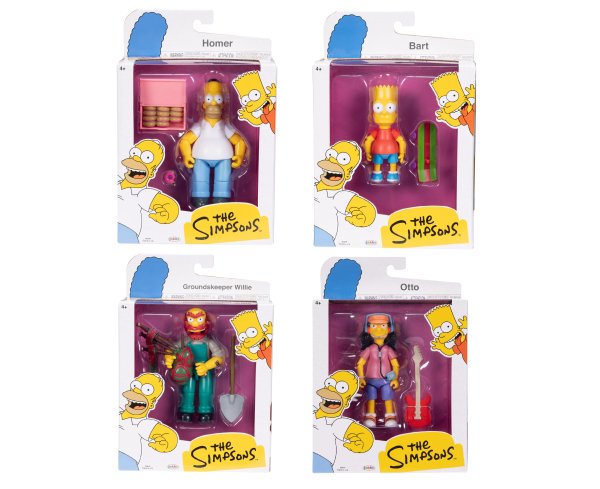 Simpsons Figúrka 12,5 cm - Wave 1. Veľkosť figúrky 12,5 cm. 4 varianty - Homer, Bart, Otto, Školák Willie.