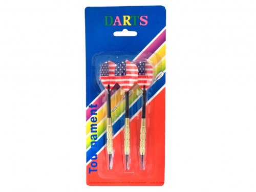 Sada hádzacích šípok s motívom vlajky USA. Hádzacie šípky sú s vymeniteľnou násadkou a letkami a majú kovové hroty.