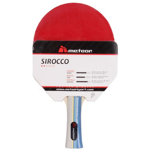 Raketa na stolný tenis Meteor Sirocco** je vhodná pre rekreačných hráčov aj pre skúsenejších a pokročilých hráčov . Rakety Sirocco** sú vyrobené z kvalitných materiálov – dreva, PU peny a gumy – ktoré zaručujú dobrú odolnosť a dlhú životnosť. Vďaka ergonomickému tvaru rukoväte sa raketa ľahko prispôsobí Vašej ruke. Rakety boli vyrobené pomocou najmodernejších technológií, vďaka ktorým tak budú spĺňať aj požiadavky náročnejších hráčov. Optimálna rýchlosť je dosiahnutá použitím elastickej gumy pre vynikajúcu kontrolu a trakciu. Drevená rukoväť zaručuje veľmi dobrý grip, vďaka čomu je raketa vhodná pre útočný štýl hry. Parametre: Rýchlosť: 7/10 Rotácia: 6/10 Kontrola: 8/10 Dĺžka rukoväte: 100 mm Šírka rukoväte: 34 mm Hrúbka hlavy: 11.5 mm Hmotnosť pálky: 142 g Plášť: 2.5 mm Vrstvy: 5 Farba