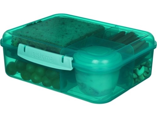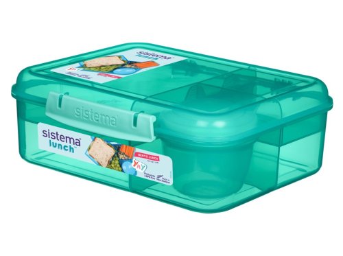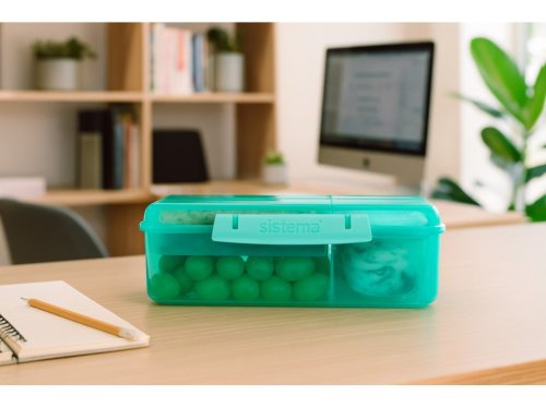 Sistema Delený desiatový box Lunch Bento s nádobou na jogurt a 2 tácky 1,65 l, mätová