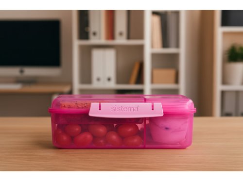 Vďaka inovatívnemu dizajnu s tromi komorami, odnímateľnými táckami a 150ml kelímkom na jogurt, táto krabička umožňuje udržať jedlo oddelené a čerstvé až do doby konzumácie.