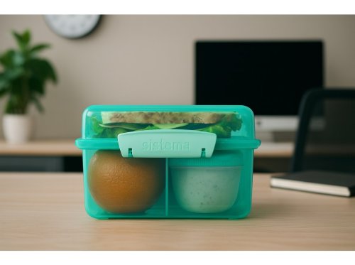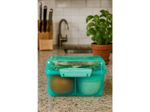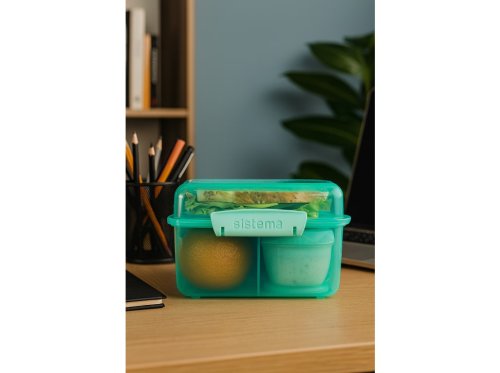 Vďaka inovatívnemu dizajnu s tromi komorami, odnímateľnými táckami a 150ml kelímkom na jogurt, táto krabička umožňuje udržať jedlo oddelené a čerstvé až do doby konzumácie.
