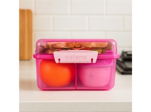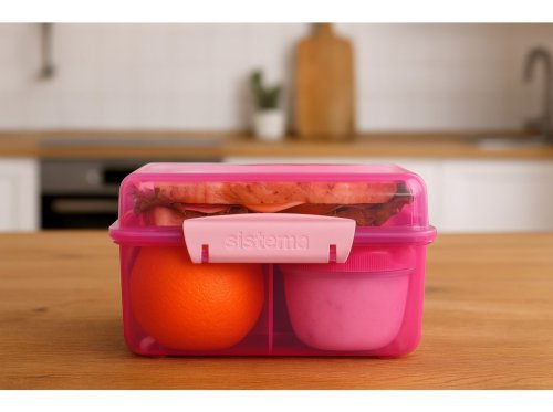Vďaka inovatívnemu dizajnu s tromi komorami, odnímateľnými táckami a 150ml kelímkom na jogurt, táto krabička umožňuje udržať jedlo oddelené a čerstvé až do doby konzumácie. Vhodné na umývanie v umývačke riadu v hornom koši.