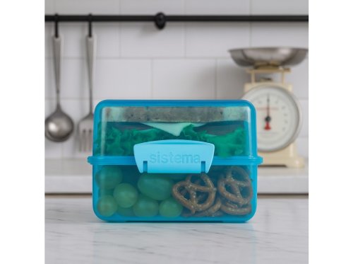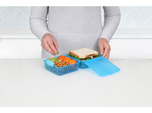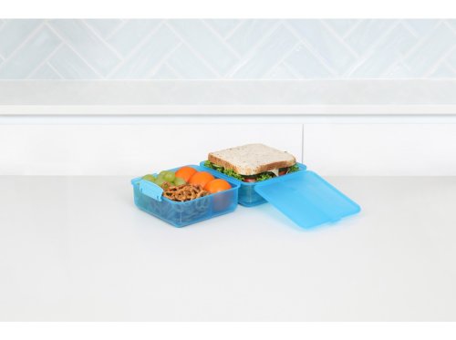 Krabička sa skladá z dvoch poschodí, ktorá ponúka dostatok priestoru na pestrý a vyvážený obed. Veľká priehradka je ideálna na uloženie sendviča, zatiaľ čo menšie priehradky sa skvele hodia na ovocie, zeleninu, orechy alebo iné drobné pochutiny.