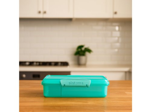 Krabička je vybavená ľahko uzatvárateľnými klipmi Sistema® a pružným tesnením, ktoré udržujú potraviny dlhšie čerstvé. Vďaka oddeleným priehradkám, modulárnemu dizajnu a ľahkému čisteniu je táto krabička ideálna na každodenné použitie.