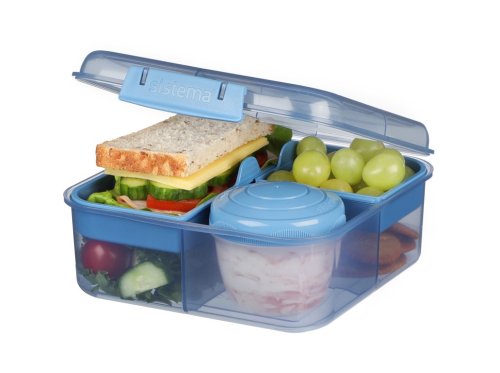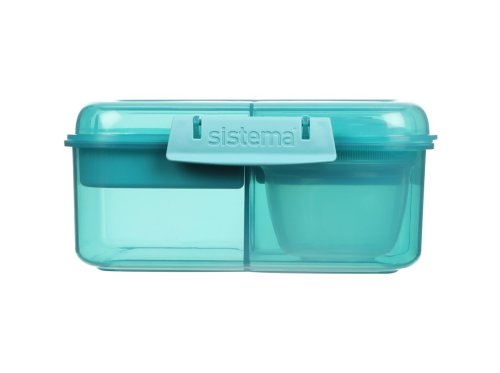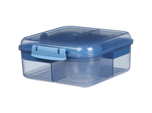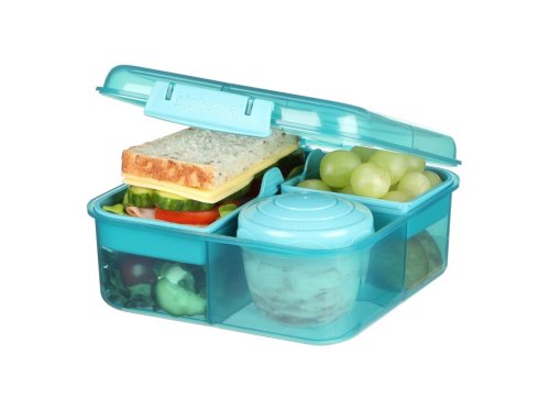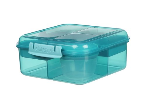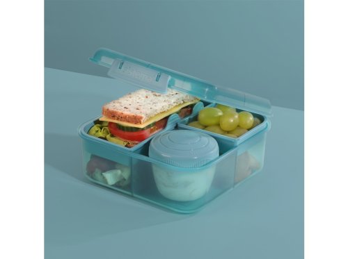 Sistema Delený desiatový box Ocean Bound Bento Cube s nádobou na jogurt a 2 tácky 1,25 l, mix farieb