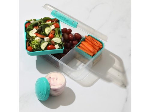 Krabička je ideálna na prenášanie obeda, desiaty alebo šalátu. Súčasťou krabičky je aj nádoba na jogurt a dve tácky, pre jednoduchšiu organizáciu vášho jedla. Krabička je vyrobená z odolného plastu. Výhody: • Tri komory na oddelenie potravín • Nádoba na jogurt • Dve tácky pre organizáciu jedla • Odolný plast