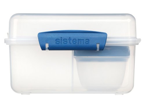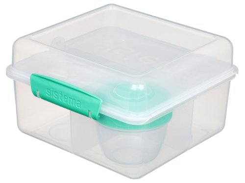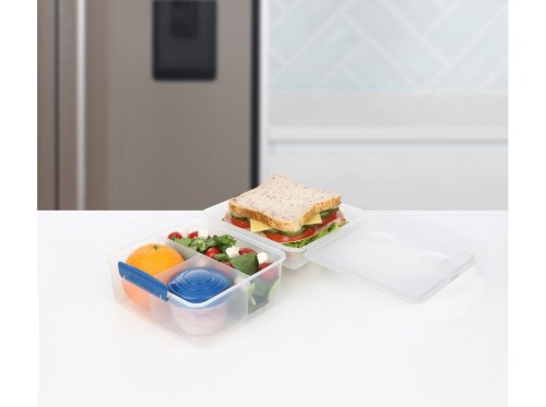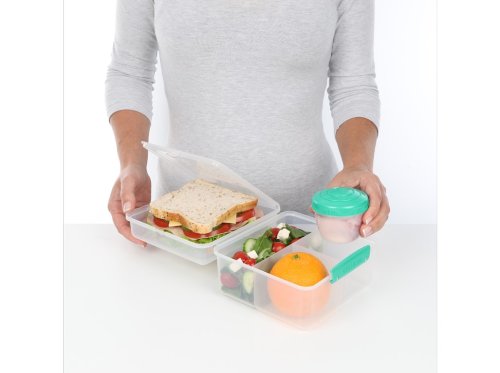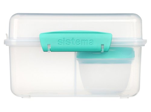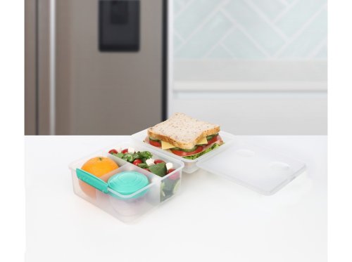 Krabička je rozdelená do troch komôr, ktoré vám umožnia oddeliť rôzne druhy potravín a zabrániť ich zmiešaniu. Môžete si tak vziať so sebou napríklad sendvič, šalát a ovocie v jednom. Súčasťou krabičky je 150ml nádoba na jogurt s tesniacim skrutkovacím viečkom, ktorá je ideálna na uloženie jogurtu, müsli, pudingu alebo iných tekutých potravín.