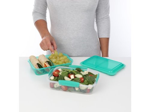 Praktická a štýlová krabička na obed Sistema Flip and Nest 1,8 l je ideálna pre všetkých, ktorí si chcú vziať so sebou na cesty zdravé a chutné jedlo. Krabička je vyrobená z odolného plastu a má dva oddiely, ktoré vám umožnia oddeliť rôzne druhy potravín.