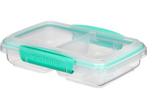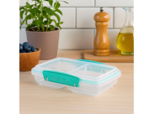 Krabička je rozdelená do dvoch oddielov, takže si môžete zobrať so sebou dva druhy jedla bez rizika, že sa zmiešajú. Táto krabička vám pomôže obmedziť používanie plastových vrecúšok a potravinových fólií a zároveň vám zaistí, že vaše jedlo bude čerstvé a chutné. Výhody: • Dva oddiely • Jednoduché uzamykanie: Klip Sistema® a pružné tesnenie • Modulárny design