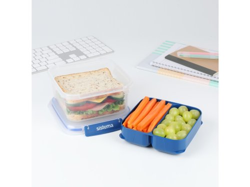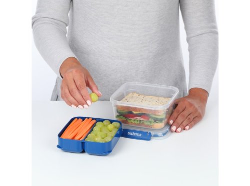 Sistema 1,15 l TO GO STAX je skvelou voľbou pre všetkých, ktorí hľadajú praktický a štýlový spôsob, ako bezpečne prenášať jedlo do práce, školy aj na cesty. Odnímateľný zásobník umožňuje oddelenie rôznych druhov potravín, takže si môžete vychutnať čerstvú a chutnú desiatu kedykoľvek a kdekoľvek. Stohovateľný tvar zaisťuje maximálne využitie priestoru v špajze, chladničke a mrazničke. Ľahko uzatvárateľné klipy Sistema® a pružné tesnenie udržujú potraviny dlhšie čerstvé.