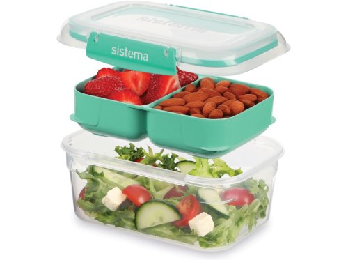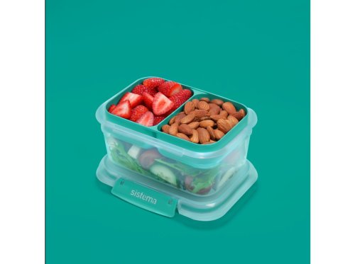 Sistema 1 l TO GO STAX je skvelou voľbou pre všetkých, ktorí hľadajú praktický a štýlový spôsob, ako bezpečne prenášať jedlo do práce, školy aj na cesty. Odnímateľný zásobník umožňuje oddelenie rôznych druhov potravín, takže si môžete vychutnať čerstvú a chutnú desiatu kedykoľvek a kdekoľvek. Stohovateľný tvar zaisťuje maximálne využitie priestoru v špajze, chladničke a mrazničke. Ľahko uzatvárateľné klipy Sistema® a pružné tesnenie udržujú potraviny dlhšie čerstvé.