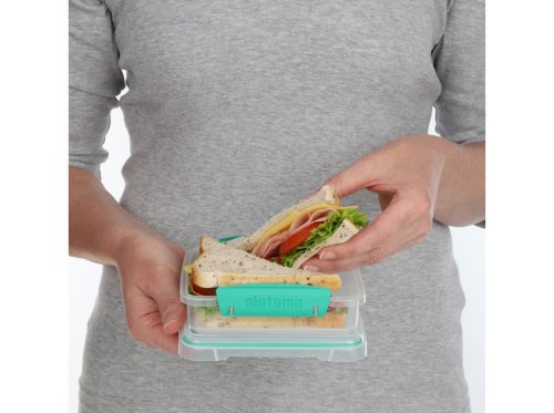 Krabička sa vďaka svojej kompaktnej veľkosti a nízkej hmotnosti ľahko prenáša v batohu, taške alebo kabelke . Krabička má objem 450 ml, takže sa do nej zmestí aj veľký sendvič, tortilla, wrap, alebo pita chleba. Môžete do nej ale uložiť aj iné druhy potravín.