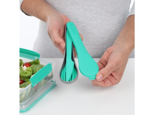 Sada príborov Sistema je praktický a kompaktný pomocník pre všetkých, ktorí chcú mať po ruke príbor na cestách aj v práci. Vďaka odolnému puzdru a ľahkému čisteniu je sada ideálna na každodenné používanie. Vhodné na umývanie v umývačke riadu v hornom koši.