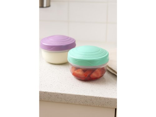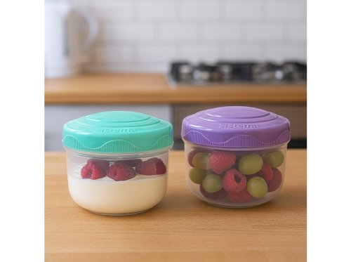 Praktické kelímky Sistema s objemom 210 ml, dodávané v sade po dvoch kusoch, sú perfektné pre bezpečné prenášanie menších porcií ovocia, šalátu, omáčky či iných dobrôt. Tégliky sú vhodným doplnkom klasických desiatových boxov.