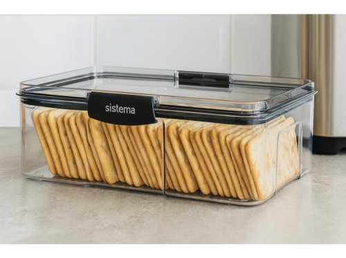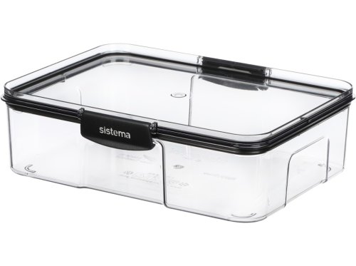 Ultra priehľadný plast s priehľadnosťou podobnou sklu umožňuje ľahký prehľad o obsahu nádoby. Odolné a nerozbitné. Stohovateľné na úsporu miesta a efektívnu organizáciu kuchyne. Vďaka ľahko uzamykateľným klipom Sistema a vzduchotesnému uzáveru, udržuje obsah čerstvý. Patrí do rady obdĺžnikovej 223 × 175 mm.