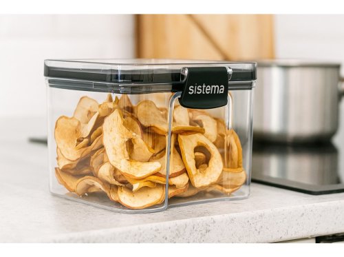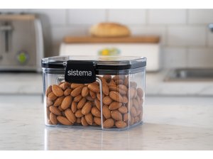 Ultra priehľadný plast s priehľadnosťou podobnou sklu umožňuje ľahký prehľad o obsahu nádoby. Odolné a nerozbitné. Stohovateľné na úsporu miesta a efektívnu organizáciu kuchyne. Vďaka ľahko uzamykateľným klipom Sistema a vzduchotesnému uzáveru, udržuje obsah čerstvý. Patrí do radu štvorcového 114 × 102 mm.