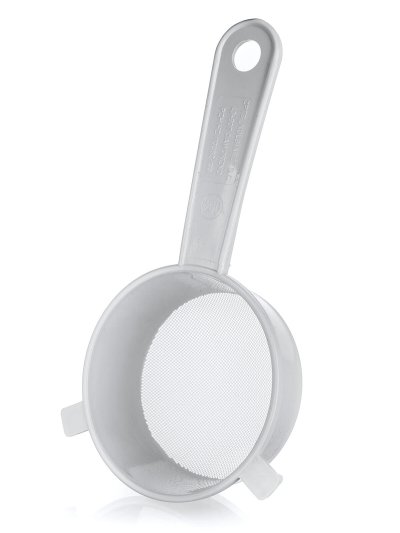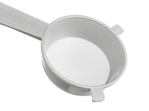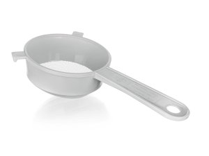 Plastové sitko PRAKTIS v bielej farbe, je vhodným pomocníkom na cedenie pokrmov alebo cestovín.
